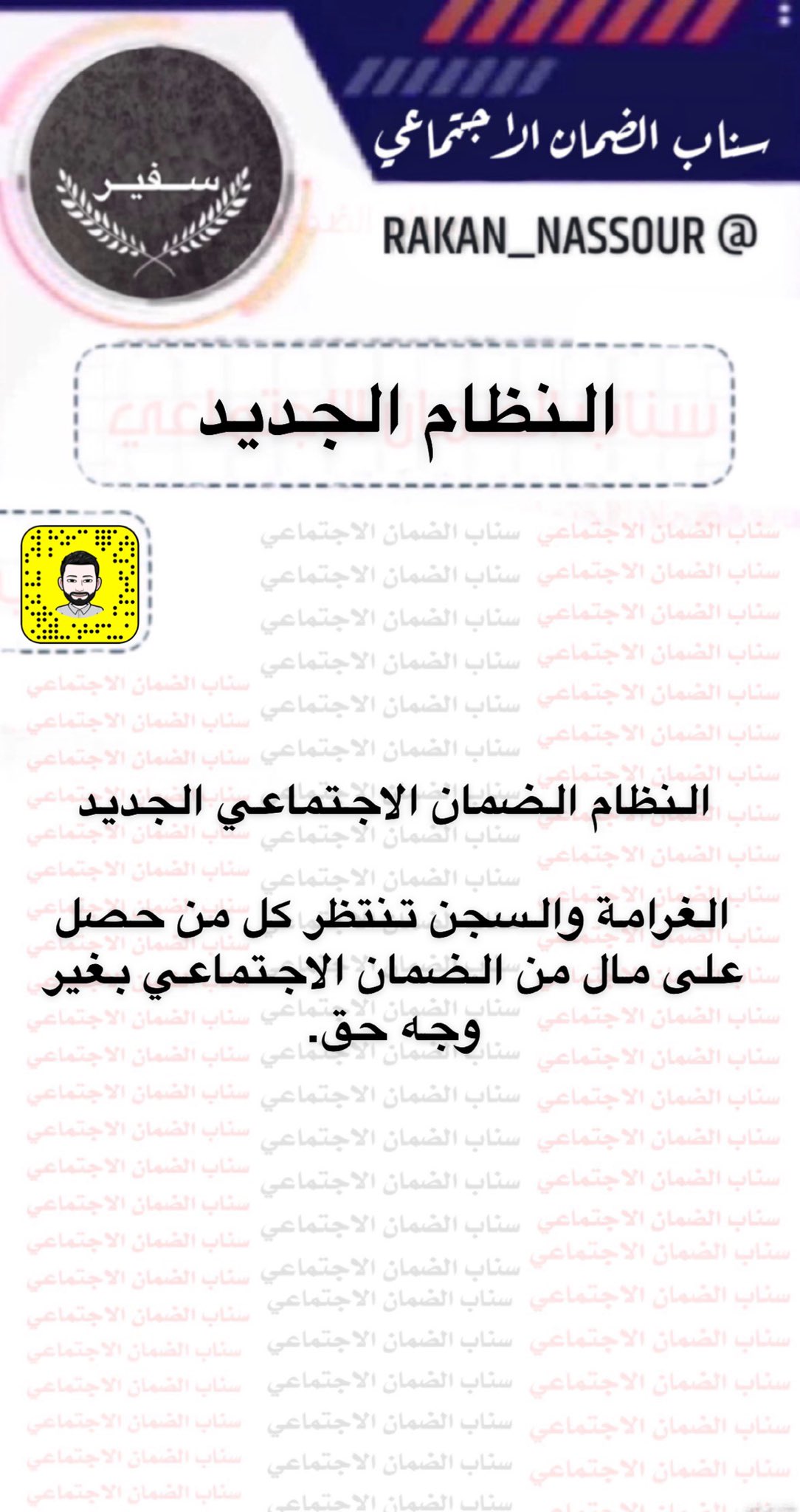 سفير الضمان الاجتماعي On Twitter نظام الضمان الاجتماعي الجديد الغرامة والسجن تنتظر كل من حصل على مال من الضمان الاجتماعي بغير وجه حق